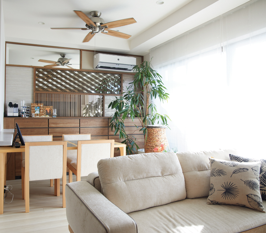 - ご夫婦で結婚式を挙げられた思い出の場所でもある「ハワイ」が今回のお部屋のテーマ。初めから明確なイメージをお持ちだったので、それを実現するべく打ち合わせを重ねました。