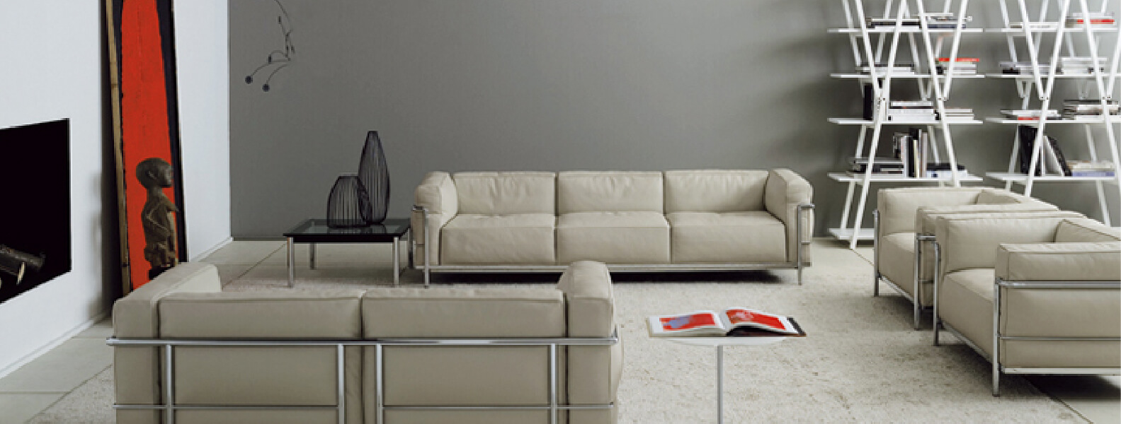 1887年にスイスで生まれた建築家のル・コルビュジエ。家具デザインの多くは、従兄弟であり建築のパートナーでもあるピエール・ジャンヌレと、フランス出身のデザイナーであるシャルロット・ペリアンとの共同作業で行われました。3人が1928年にデザインした金属製の家具LC2シリーズは世界で成功を収め、現在でも傑作として人気を集めています。LC3シリーズは「グラン・コンフォール」と呼ばれるLC2シリーズの派生モデルとして誕生しました。LC2がダブルクッションなのに対し、シングルクッションとなっているのが特徴。座面高を低くした上で幅と奥行きをLC2より大きくし、ゆったりと余裕のある座り心地を実現。1人掛け~3人掛けの両アームタイプのほか、「Meridienne」と名付けられた1人掛け片アーム(左/右)タイプも用意されています。