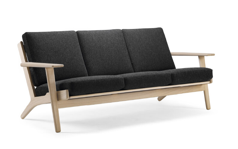 1899年の設立当初はデンマークのマットレス専門メーカーだったゲタマ。北欧を代表する家具メーカーに変わる転機となったのは、GE290のデザイナーであるハンスJ.ウェグナーとのコラボレーションからでした。彼の高い要求に対し革新的な技術で答えるという形で、数々の名作家具が世に送り出されたのです。ウェグナー作品では一番人気と言われるGE290のほかには、デイベッドのGE258やGE259も有名。1953年にデザインされたGE290は、幅広のアームを支える前脚と、フレームと一体となった後脚による独特のシルエットが特徴。絶妙に計算された背もたれの傾斜によって、身体が自然とソファに沈み込むようにフィットし、快適な座り心地を実現します。もともとマットレスのメーカーだっただけあり、クッションの質感にも定評があります。